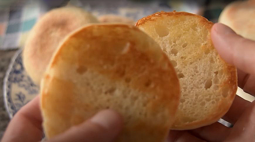 6. Разогрейте сковороду на среднем огне, слегка смажьте растительным маслом. Выпекайте маффины партиями под крышкой: 10-12 минут с одной стороны до золотистой корочки, затем переверните и готовьте еще пять минут.