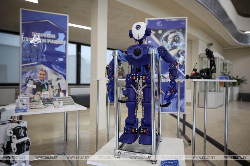 Ребята передали в подарок Президенту специально изготовленную фигурку робота, который выполнен в цветах национальной символики. Александр Лукашенко поручил разместить "этого человека" во Дворце Независимости.-0-