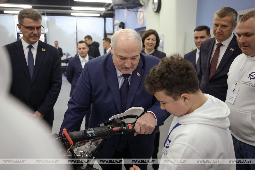 Александр Лукашенко подробно ознакомился с учебно-материальной базой центра, посетил лаборатории по различным направлениям инновационного технического творчества, пообщался с педагогами и их воспитанниками, ознакомился с представленными разработками. В их числе, например, робот-вездеход и робот-пылесос, автономный источник энергии. И здесь разговор был весьма обстоятельным. Президент предложил присмотреться к отдельным проектам на предмет возможности их внедрения в реальное производство. Активно делился личным опытом.