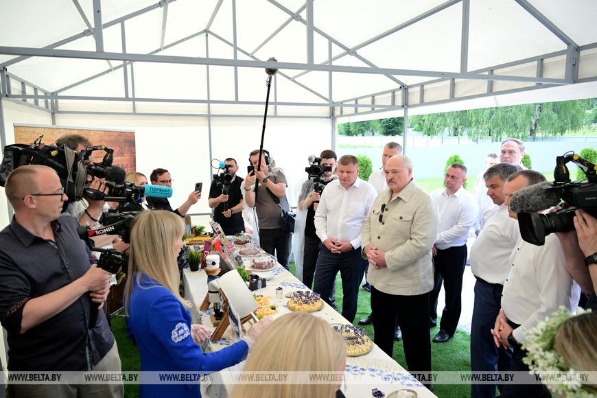 Александр Лукашенко во время посещения РУСПП "Могилевское Госплемпредприятие" 8 июля 2025 года