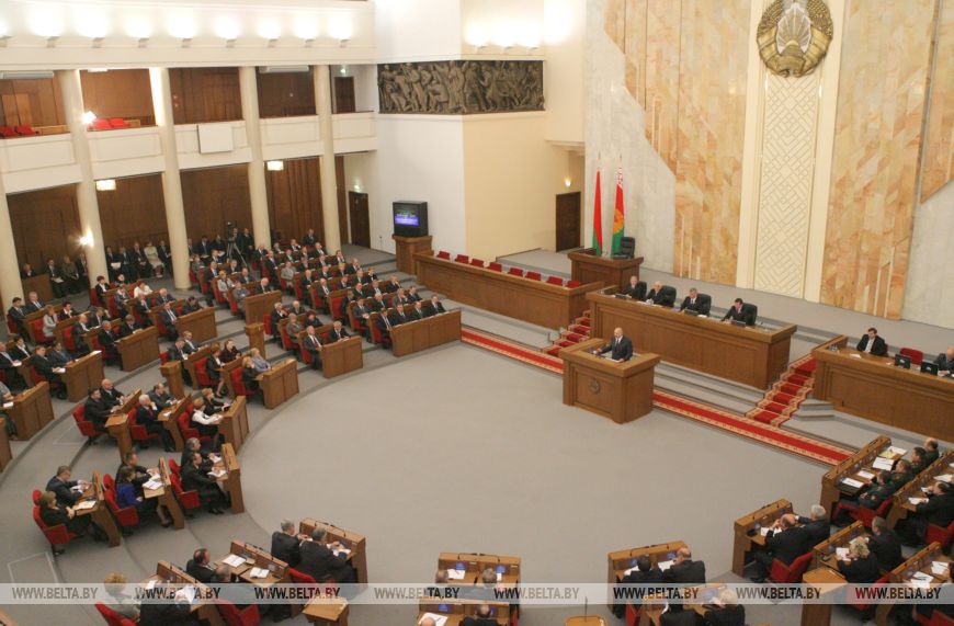 Александр Лукашенко во время выступления с Посланием белорусскому народу и Национальному собранию, апрель 2010 года