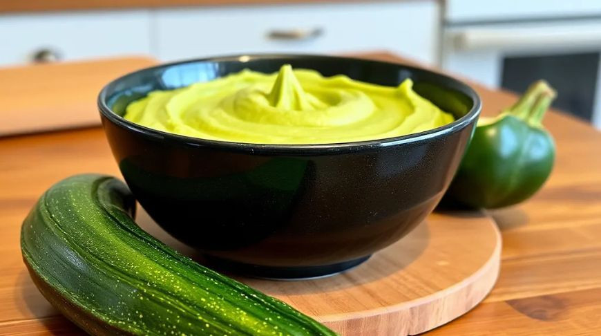 Сложите кабачок в блендер. Добавьте чеснок, лимонный сок, оливковое масло и сметану. Взбейте до получения однородной массы. Если масса кажется слишком густой, добавьте немного воды или еще ложку сметаны.