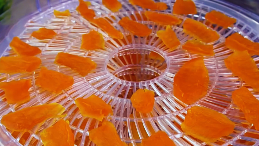 Готовые кусочки выкладывают на лотки сушилки и оставляют свободное пространство между ними. Сушат при температуре 65°С – весь процесс продолжается чуть более суток.