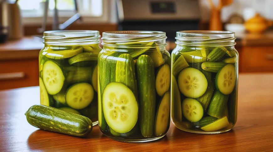Нарежьте огурцы и разместите их в стерилизованных банках, добавив специи. Приготовьте рассол: смешайте воду, соль, сахар, уксус, доведите до кипения и залейте огурцы. Закатайте банку и оставьте охлаждаться при комнатной температуре.