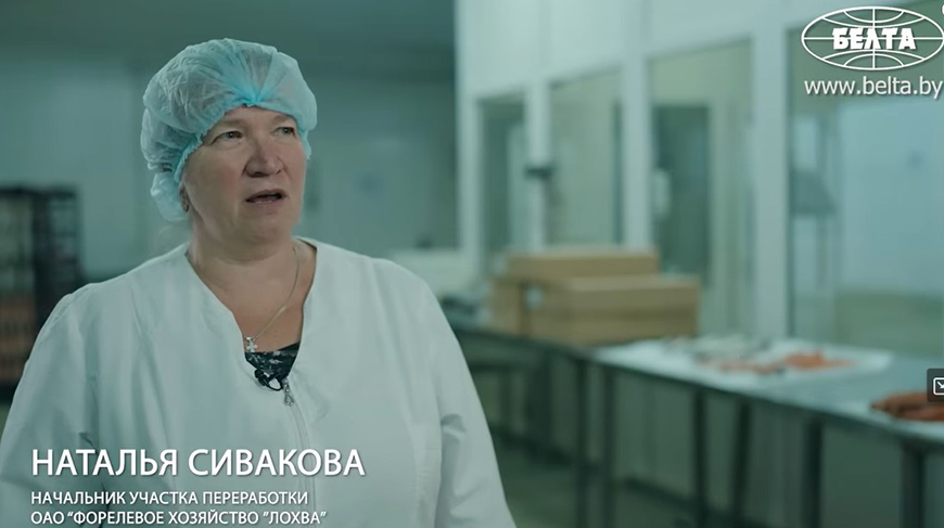 "Ее калтычат (делают надрез под жабрами, чтобы перерезать артерию. - Прим. БЕЛТА), охлаждают, и она поступает на разделку. Дальше - в зависимости от заявки - она у нас идет на копчение, на охлажденную рыбу, делаются из нее филе-стейки, соленое филе. При копчении ее солят и направляют на копчение при 26-28 градусах. Копчение занимает около суток вместе с подсушкой, выходит очень красивая и вкусная рыбка", - довольна результатами работы начальник участка переработки Наталья Сивакова.