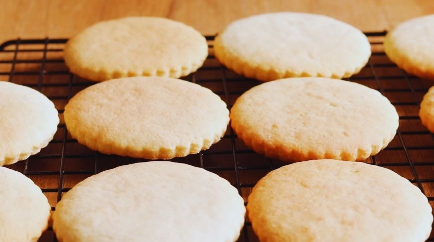 Используя формочки, вырезают коржики традиционной формы. Их выкладывают на противень и выпекают в предварительно разогретой духовке при 180 °С в течение 20-25 минут. Когда коржики приобретают золотистую легкую корочку - они готовы.