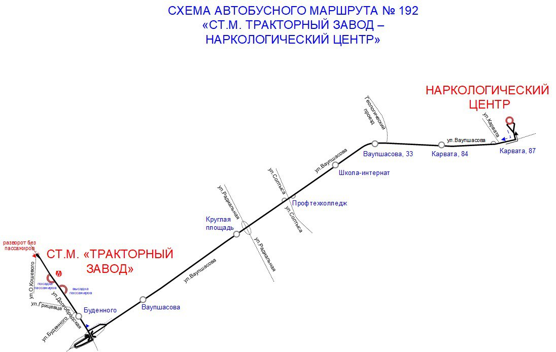 Со среды автобус №192 "Станция метро "Тракторный завод" - Наркологический центр" выполняет рейсы ежедневно.