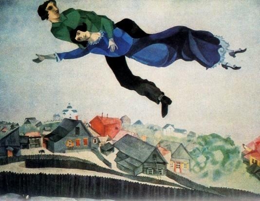"В некотором смысле, вы летите, когда вы влюблены", - говорит Мария Грация Киури, делая отсылку к картинам Шагала "Над городом" (1917) и "Прогулка" (1918), где влюбленные парят над землей.