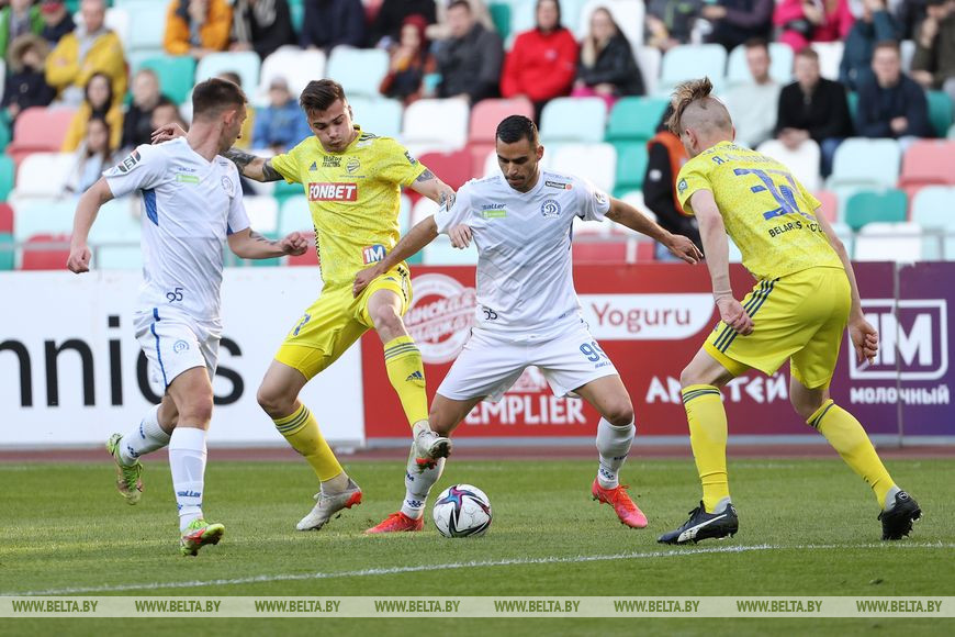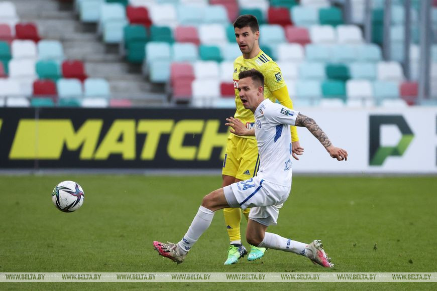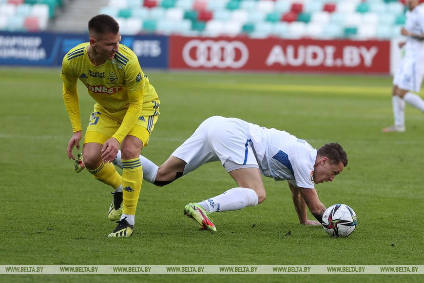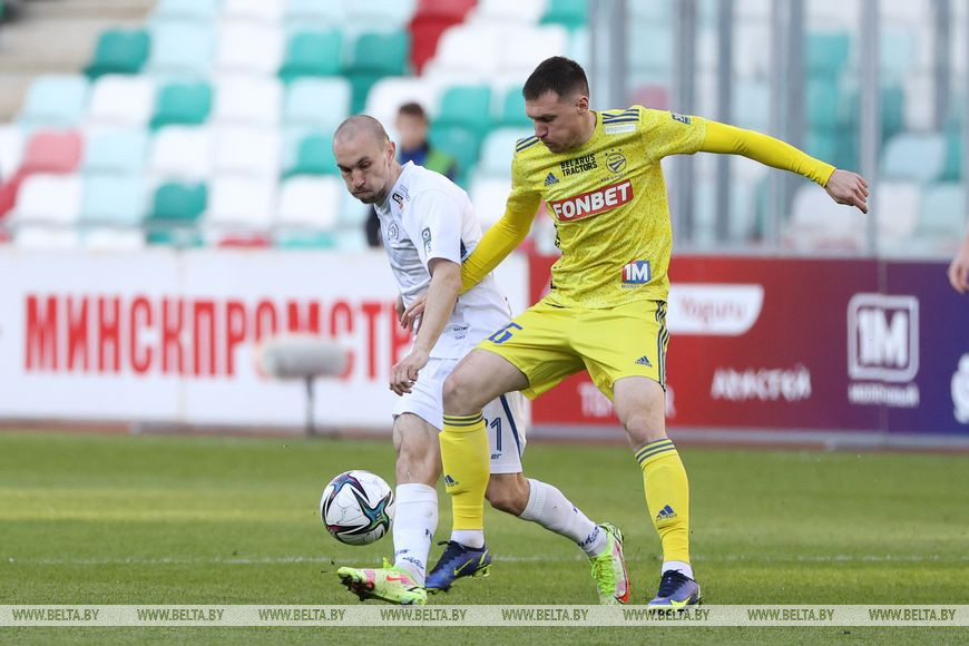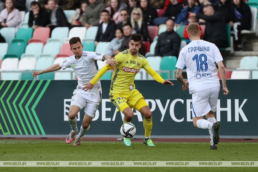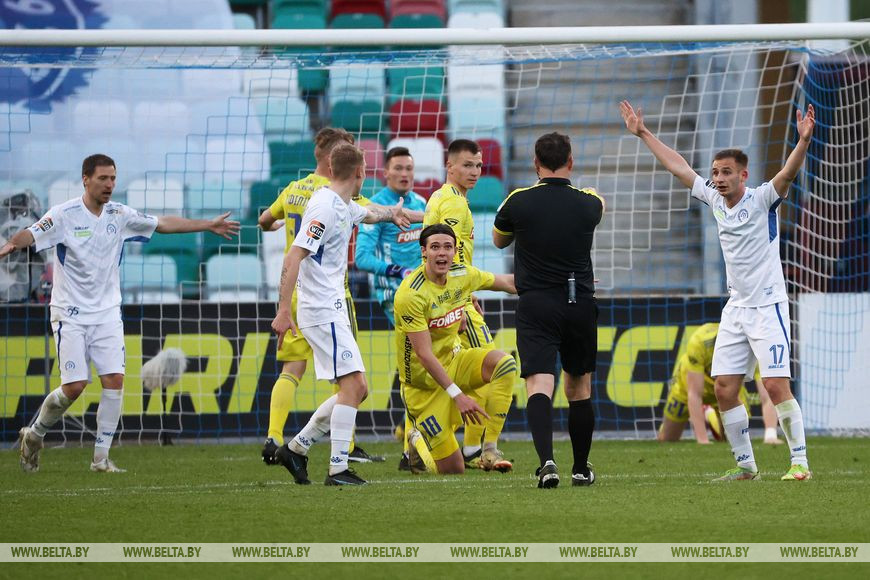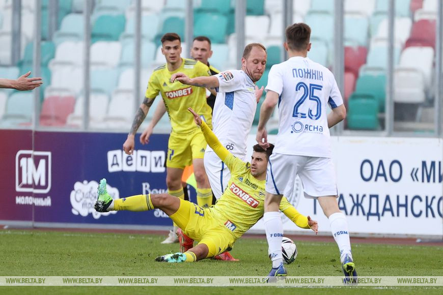 Центральный поединок 6-го тура, как и ожидалось, прошел в очень упорной бескомпромиссной борьбе. В первом тайме обе команды уделили особое внимание обороне и поэтому опасных моментов было совсем немного. Зато после перерыва зрители увидели сразу четыре забитых мяча. На 65-й минуте динамовцы заработали пенальти, который уверенно реализовал Иван Бахар. Однако гости не собирались уступать и вскоре ответили голами Станислава Драгуна и Александра Филиповича. Подопечные Артема Челядинского совсем недолго были в роли догоняющих - на 80-й минуте свой второй мяч забил Иван Бахар. В оставшееся игровое время борисовчане имели больше шансов на успех, но добыть шестую викторию кряду им не удалось - ничья 2:2.