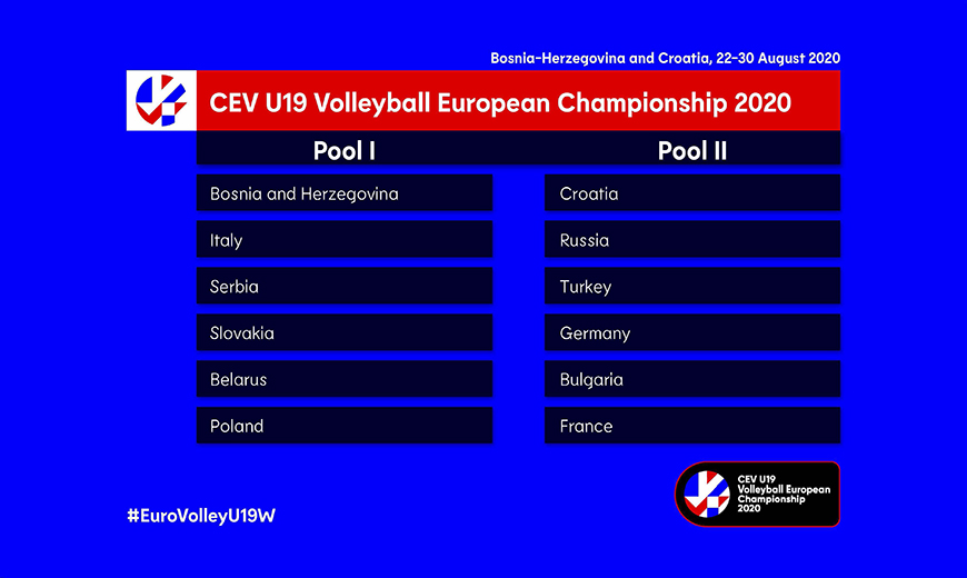 Финальный раунд молодежного первенства Европы среди спортсменок, не достигших 19 лет, состоится в Зенице (Босния и Герцеговина) и Осиеке (Хорватия) с 22 по 30 августа. Из-за пандемии коронавируса нового типа руководство ЕКВ отменило квалификационные состязания к старту, допустив к участию в нем сборные, согласно их рейтингу.-0-