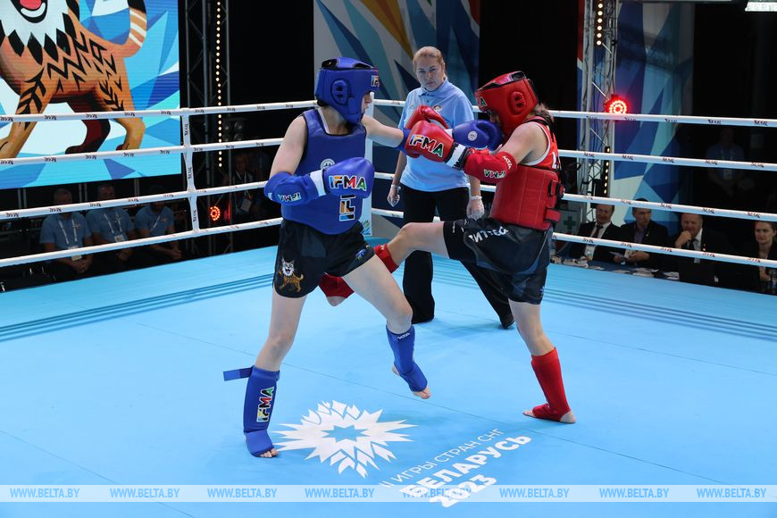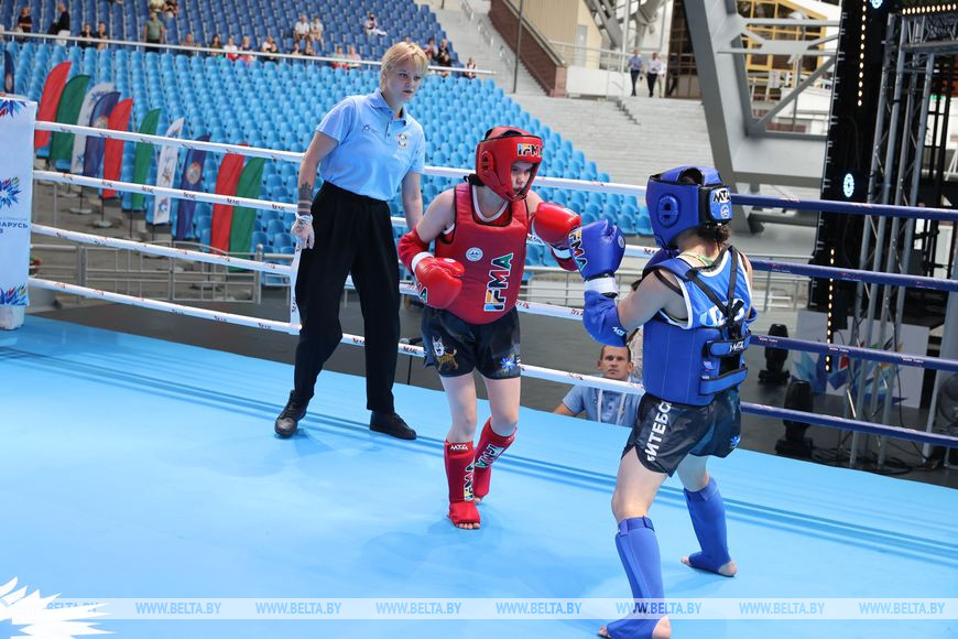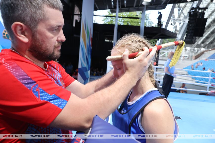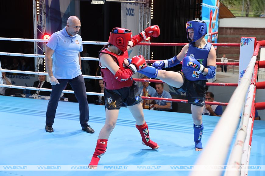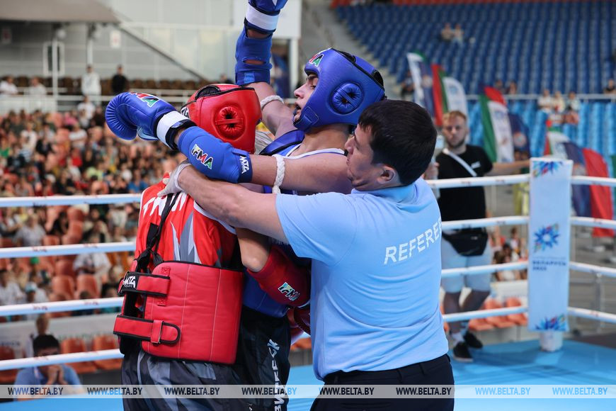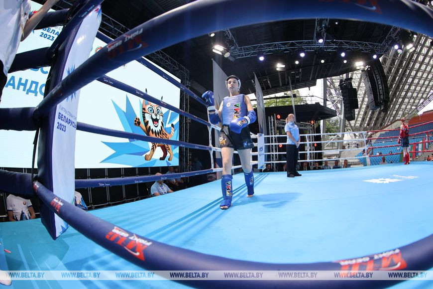 Полуфинальные встречи соревнований по муай-тай проходят в Летнем амфитеатре Витебска. В программе сессии сегодня 12 поединков в шести весовых категориях. На ринг выходят шесть белорусов: Екатерина Андрушкевич (до 45 кг), Валерия Хватик (до 51 кг), Елизавета Жигера (до 60 кг), Даниил Ермоленко (до 60 кг), Евгений Федоринчик (до 67 кг) и Семен Ступакевич (до 75 кг). Финальные бои запланированы на 13 августа.-0-