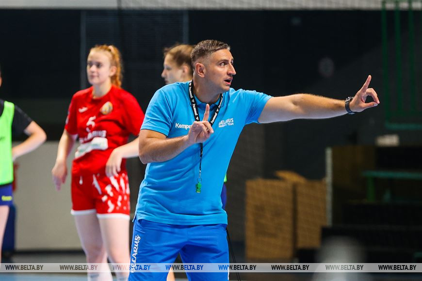 Вечером 31 июля вечерняя тренировка первой стояла у девушек. "Изначально мы собрались в Малорите, там проводили сбор с 8 по 17 июля. В основном были на улице, немного в зале подключали мяч. С 17 июля переехали в Брест. Здесь два раза в день полноценно по два часа работаем, готовимся и тактически, и физически", - ввел в курс дела старший тренер женской сборной Беларуси по гандболу U-19 Александр Липинский.