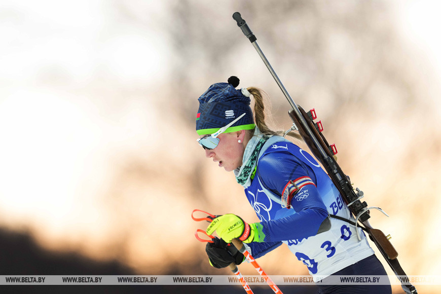 Лидер белорусской команды Динара Алимбекова до последней стойки претендовала на золотую медаль, пройдя три огневых рубежа без промахов. Однако на финальной стрельбе она добавила в пассив одну штрафную минуту и в итоге показала на финише пятый результат.