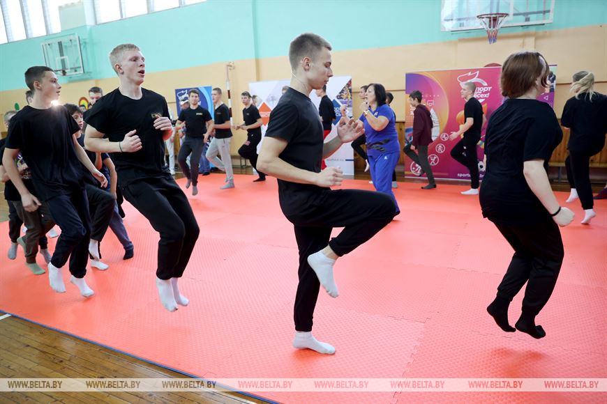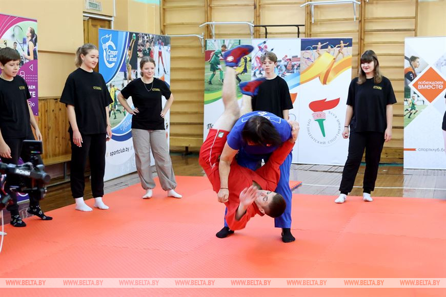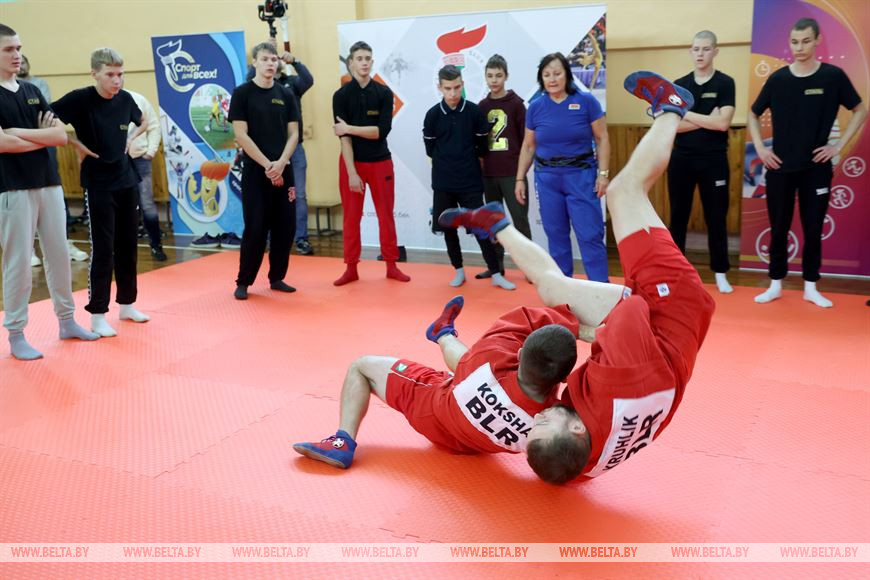 27 октября, Минск /Корр. БЕЛТА/. На базе средней школы №109 г. Минска им. В.З. Хоружей в рамках спортивно-благотворительного проекта "Смелый шаг" состоялся мастер-класс по самбо. Мастер-класс провели и поделились опытом члены национальной команды по самбо: заслуженный мастер спорта, четырехкратная чемпионка мира Светлана Тимошенко, заслуженный мастер спорта, чемпион мира, четырехкратный чемпион Европы, чемпион ІІ Европейских игр Александр Кокша, мастер спорта международного класса, призер чемпионатов мира и Европы Александр Круглик, заслуженный тренер Республики Беларусь, мастер спорта международного класса по дзюдо и самбо, многократная победительница чемпионатов мира и Европы, чемпионатов СССР Галина Савенкова.-0-