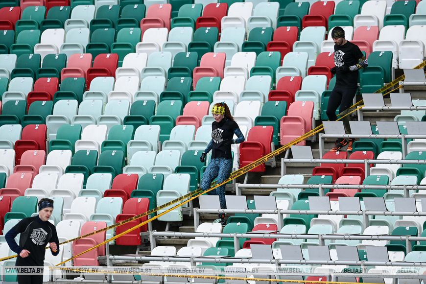 27 февраля, Минск /Корр. БЕЛТА/. Забег на выносливость и силу духа, который традиционно принимал Горнолыжный центр в Логойске опробовал стадионный формат. На этот раз в антураже национальной арены "Динамо" - масса препятствий на все группы мышц и, конечно, бег. Примерно 5 км дистанции и 20 препятствий необходимо было преодолеть, чтобы добраться до финиша.-0-