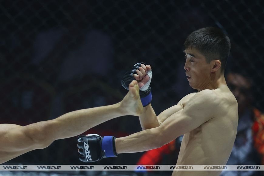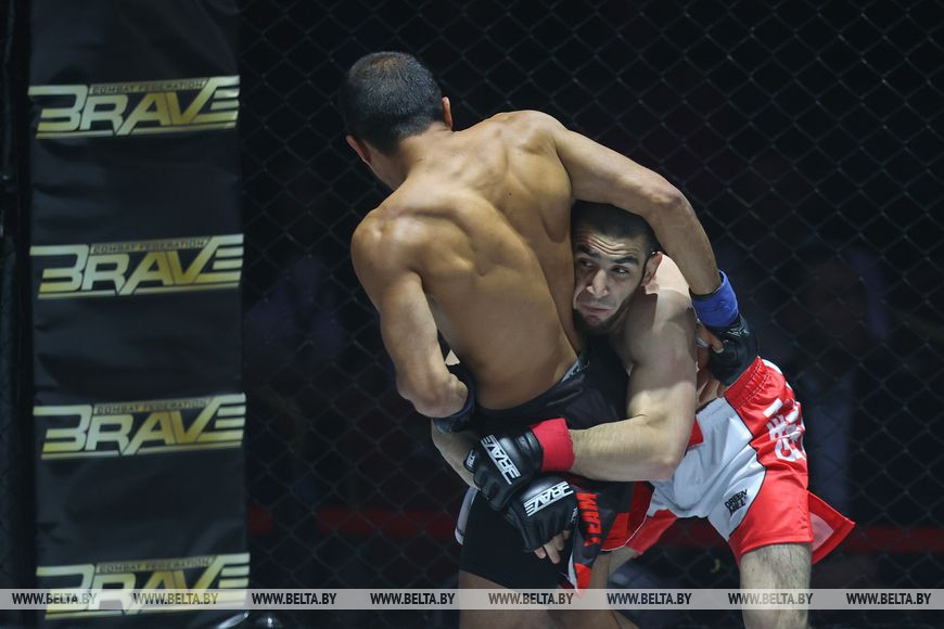 5 июня, Минск /Корр. БЕЛТА/. На площадке "Falcon Club Arena" в Минске прошел престижный бойцовский турнир BRAVE Combat Federation 51. В поединках приняли участие опытные бойцы и перспективные молодые атлеты, которые поборолись за чемпионские пояса и улучшили свои позиции в рейтинге.-0-