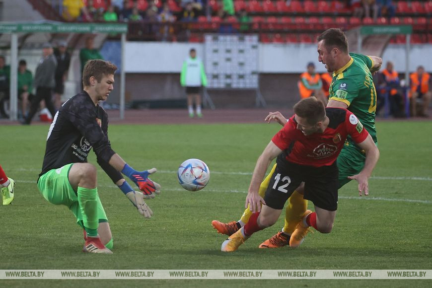 11 июня, Гродно /Корр. БЕЛТА/. В домашнем поединке 12-го тура чемпионата Республики Беларусь по футболу подопечные Игоря Ковалевича обыграли мозырскую "Славию" со счетом 1:0. Мяч на 88-й минуте с пенальти забил Павел Савицкий.-0-
