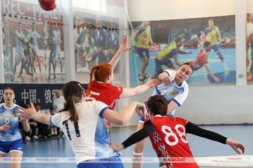 11 апреля, Минск /Корр. БЕЛТА/. В Доме гандбола стартовал международный товарищеский турнир с участием четырех команд: сборной Беларуси, сборной Беларуси (U-19), сборной России (U-19) и сборной клубов Беларуси. В первом матче турнира встречались сборные Беларуси и России 2004 г.р.-0-