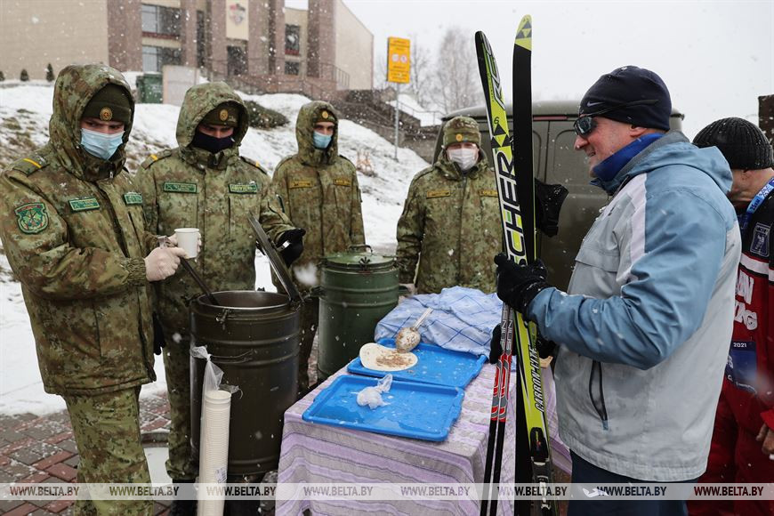 1 марта, Минск /Корр. БЕЛТА/. На лыжероллерной трассе "Веснянка" 28 февраля прошли соревнования по лыжной гонке свободным стилем Minsk Ski Cup 2021. Мероприятие под девизом "Преодолей себя!" объединило как профессиональных лыжников, так и любителей всех возрастов. На финише участников ждали памятные медали и горячая солдатская каша.-0-