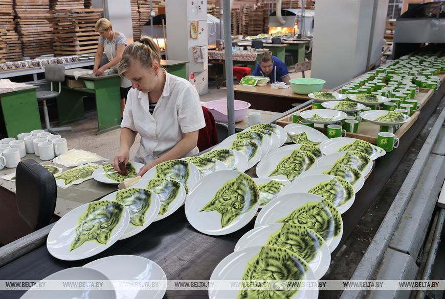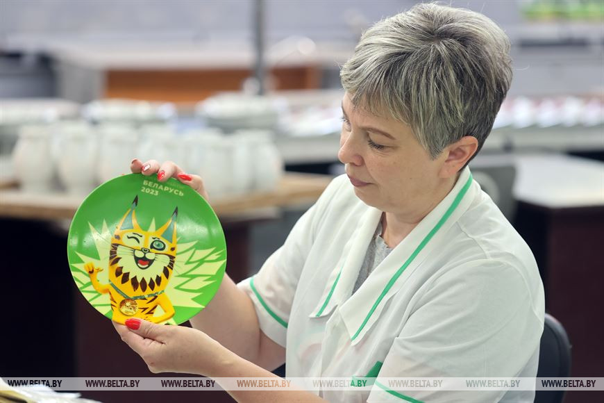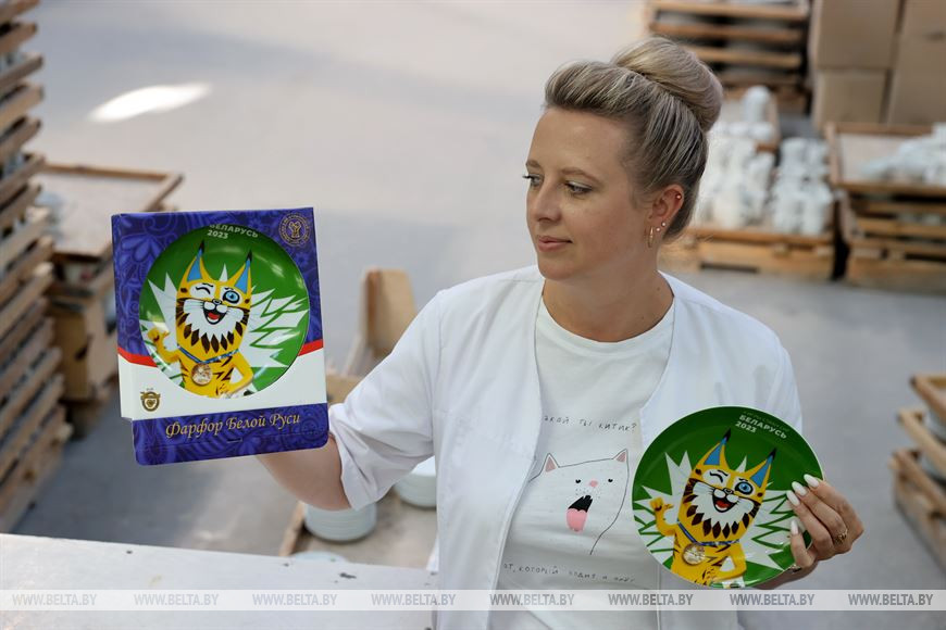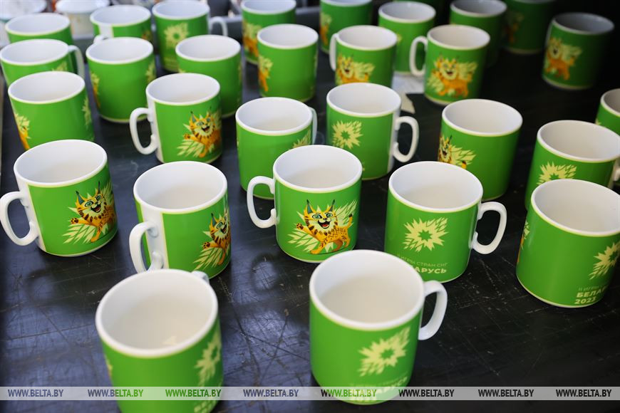 30 июля, Добруш /Корр. БЕЛТА/. Добрушский фарфоровый завод производит брендированную посуду к II Играм СНГ. Выбран самый популярный для сувениров формат - чашка и тарелка с изображением главного символа Игр - задорной и активной Рысей. На предприятии планируется выпустить порядка 30 тыс. чашек, а также 5 тыс. тарелок.-0-