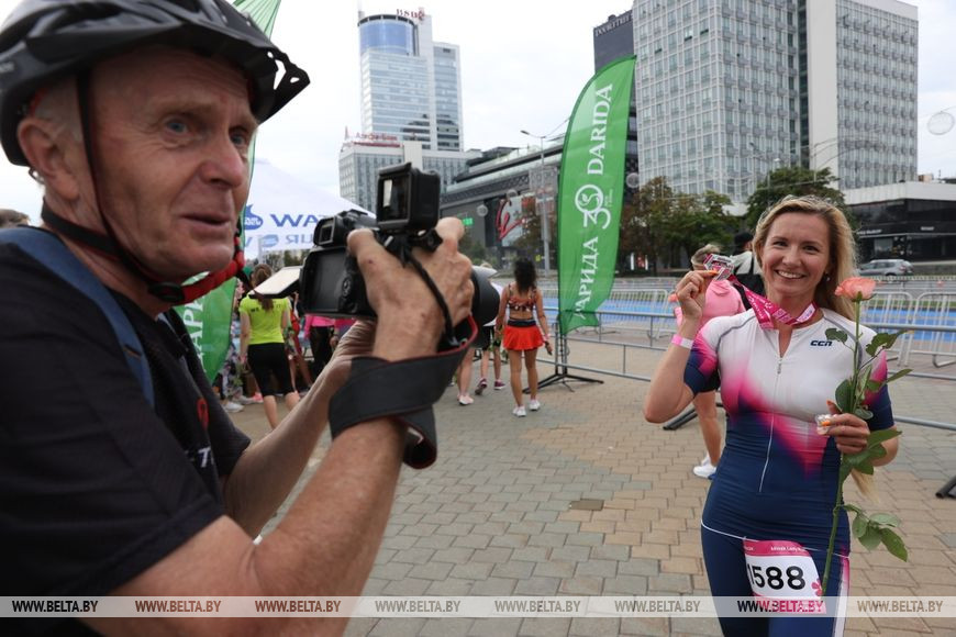 Соревнования начались на Минском море заплывом на 1900 м, затем спортсмены проехали 90 км по проспекту Победителей, а заключительным этапом стал кросс на 21 км по набережной Свислочи и парку Победы.-0-