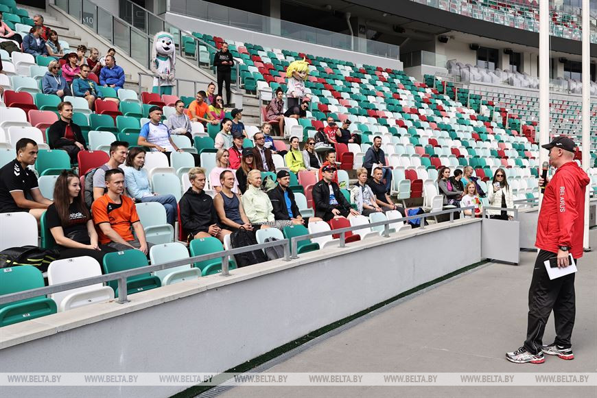 13 сентября, Минск /Корр. БЕЛТА/. На Национальном олимпийском стадионе "Динамо" Белорусская федерация легкой атлетики провела открытую тренировку и мастер-класс для любителей бега. В мероприятии приняли участие старший тренер по видам выносливости национальной команды Республики Беларусь по легкой атлетике, многократный победитель и призер международных марафонов Андрей Гордеев, а также серебряные призеры чемпионата Европы по кроссу в эстафетном беге 4 по 1.5 км.-0-