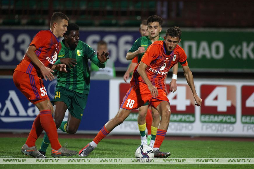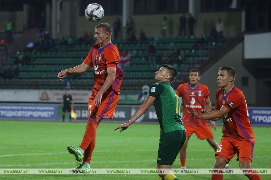 29 августа, Минск /Корр. БЕЛТА/. "Неман" в домашнем матче разгромил "Энергетик-БГУ" со счетом 3:0. Андрей Якимов открыл счет на 8 мин, Алексей Легчилин оформил дубль на 41 и 43 мин.-0-