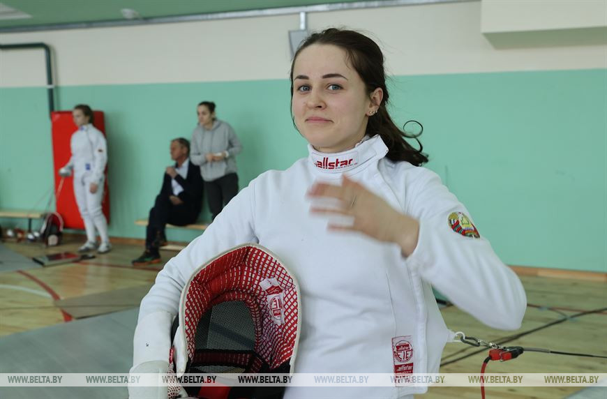 Председатель Гомельского отделения Белорусской федерации современного пятиборья Виктор Щербаков вручает удостоверение "Мастер спорта Республики Беларусь" спортсменке – учащейся Гомельского областного центра олимпийского резерва Елизавете Леше