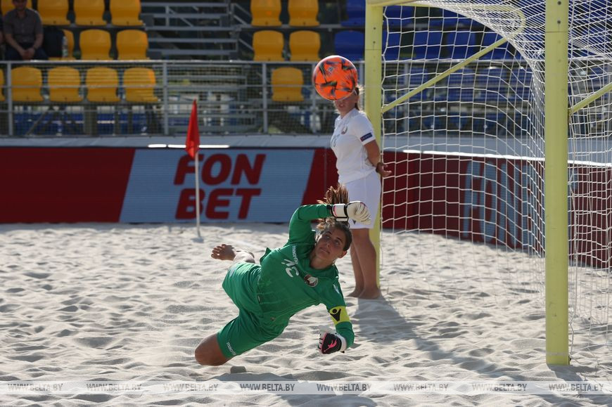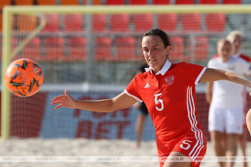 4 августа, Минск /Корр. БЕЛТА/. Товарищеский матч между женскими сборными Беларуси и России по пляжному футболу состоялся на национальном стадионе спортивно-оздоровительного комплекса "Олимпийский". Со счетом 5:2 победила сборная команда России.-0-