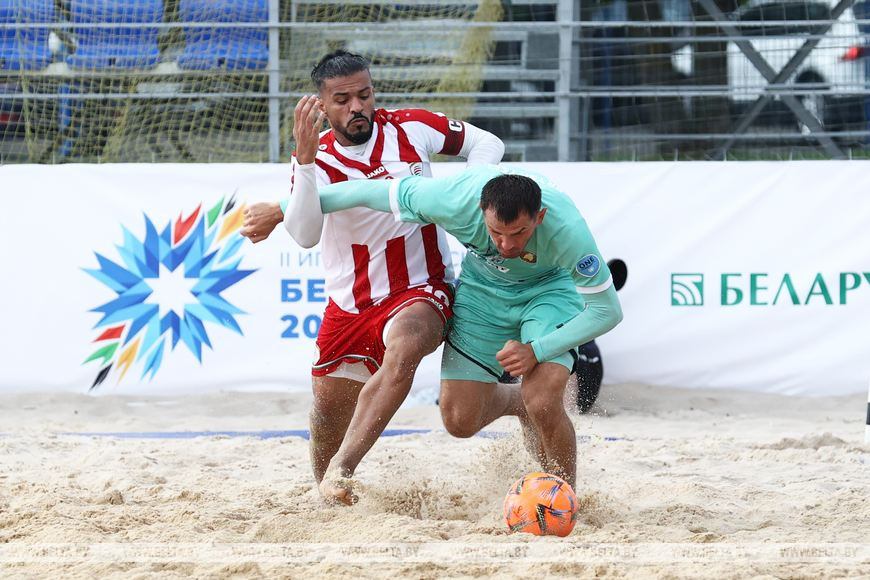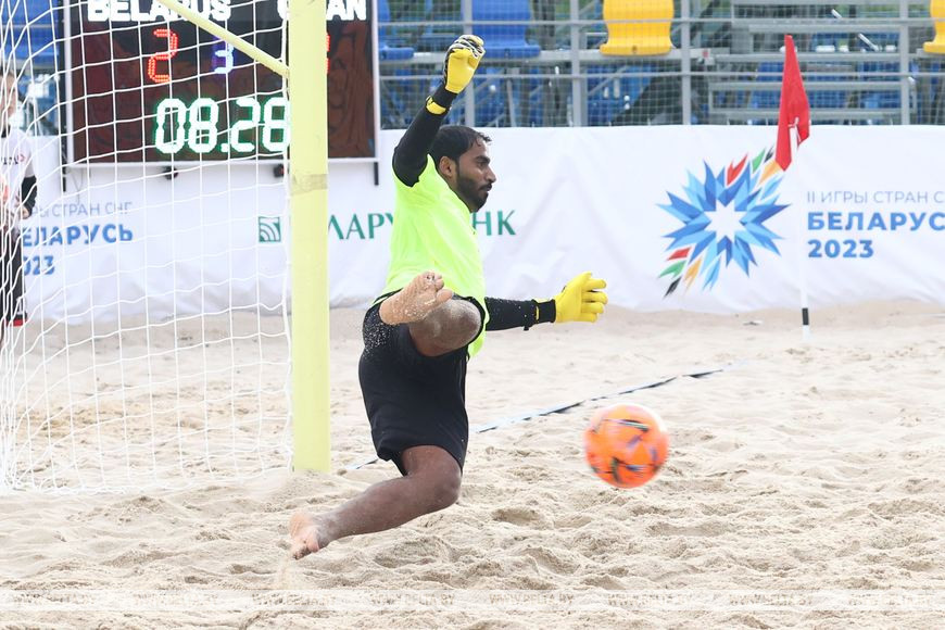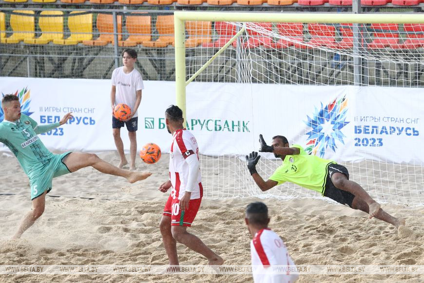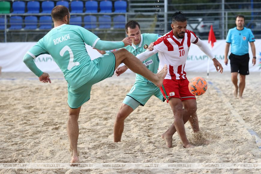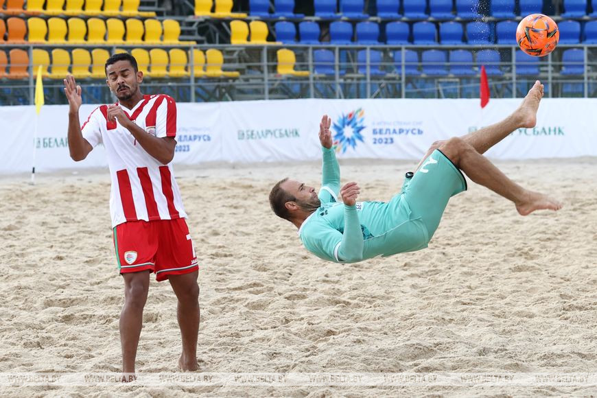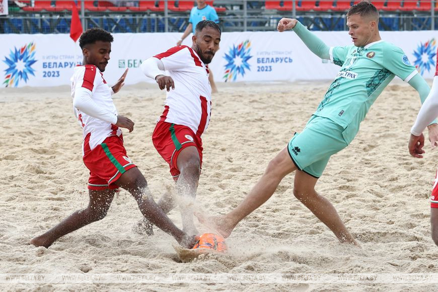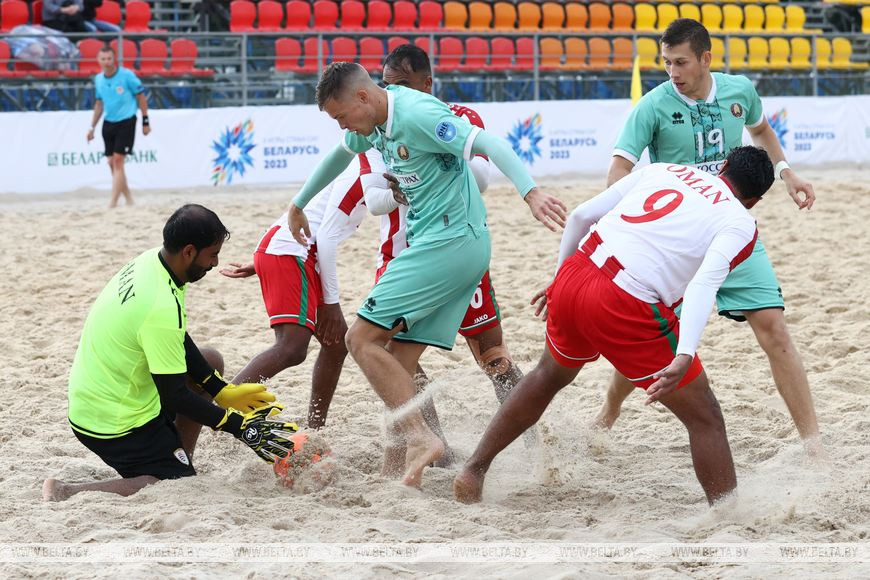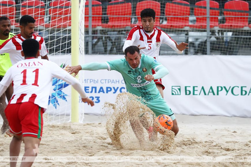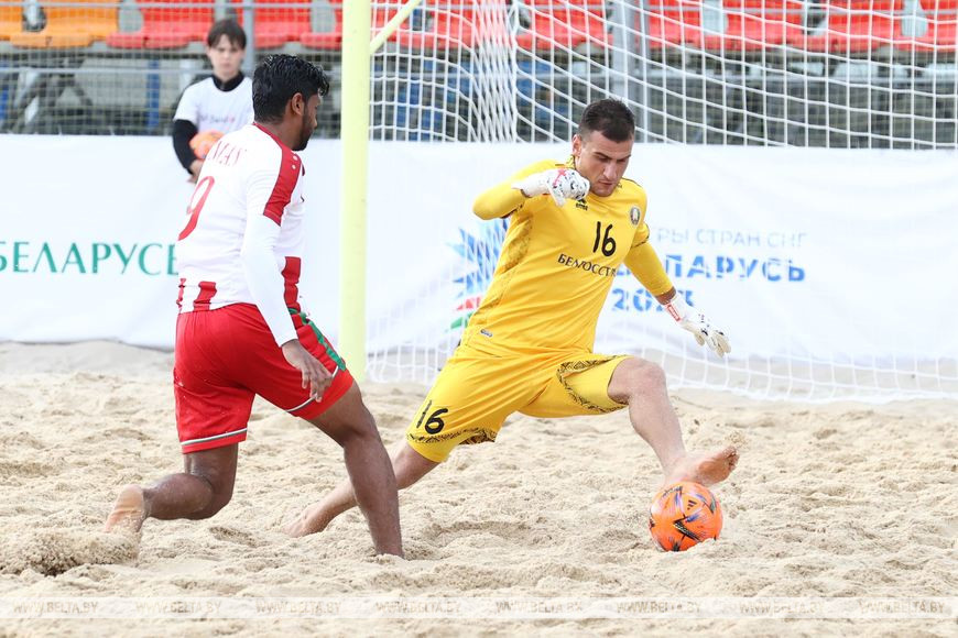 31 июля, Минск /Корр. БЕЛТА/. Сборная Беларуси по пляжному футболу в рамках подготовки к II Играм стран СНГ провела товарищеский матч с командой Омана и добилась победы со счетом 3:1.-0-