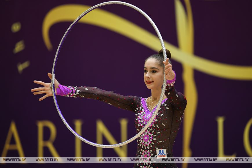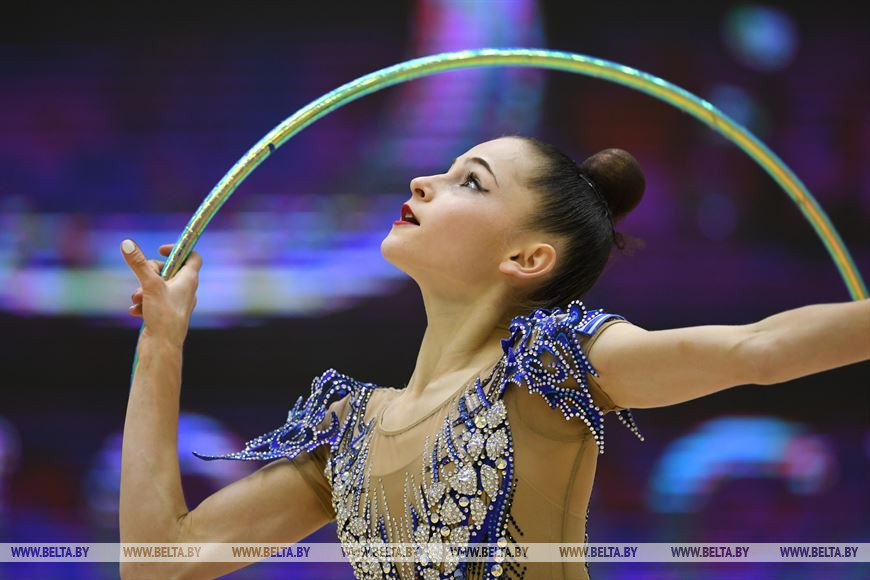 8 ноября, Минск /Корр. БЕЛТА/. 8 ноября в столичном Дворце гимнастики прошел 2-й соревновательный день международного турнира по художественной гимнастике на призы олимпийской чемпионки Марины Лобач. Гимнастки разыграли медали в финалах отдельных видов: обруч, мяч, булавы и лента.