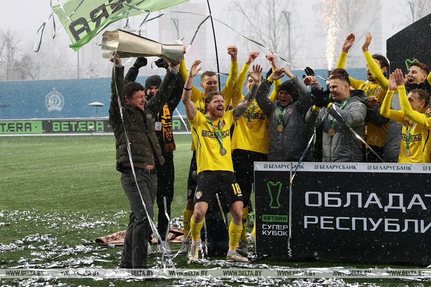 25 февраля, Минск /Корр. БЕЛТА/. Футболисты солигорского "Шахтера" во второй раз стали обладателями Суперкубка, сообщает корреспондент БЕЛТА.