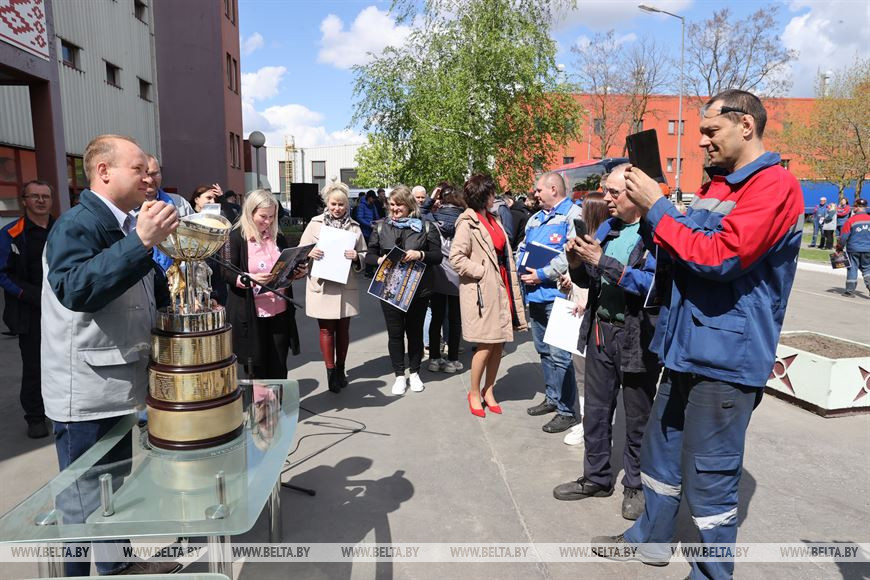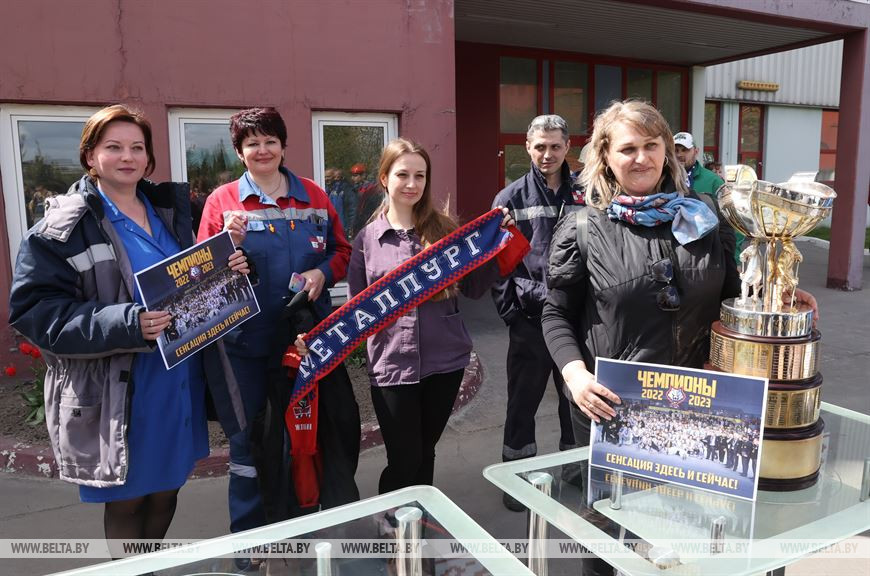 Яркая победа в заключительном матче белорусской хоккейной экстралиги сезона 2022/2023 стала приятным и ожидаемым событием для жлобинчан. Сегодня свой спортивный трофей "стальные волки" привезли на БМЗ.-0-