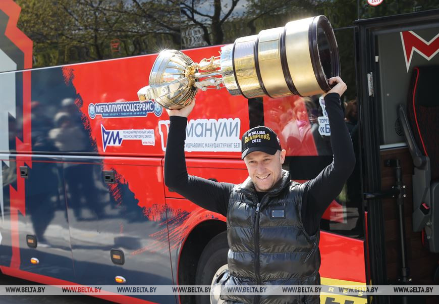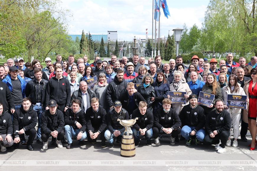 Яркая победа в заключительном матче белорусской хоккейной экстралиги сезона-2022/23 стала приятным и ожидаемым событием для жлобинчан. Сегодня свой спортивный трофей "стальные волки" привезли на БМЗ.-0-