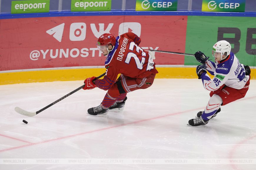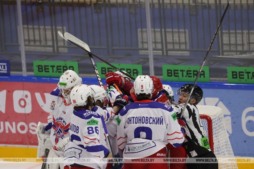 В поединке 12-го тура регулярки подопечные Сергея Стася принимали смоленский "Славутич". Первый период команды свели к ничьей, в начале второй трети минчане вновь захватили лидерство - 2:1. Однако еще до ухода на перерыв гости благодаря дублю Максима Полькина вырвались вперед, а на старте заключительного игрового отрезка удвоили перевес - 4:2.