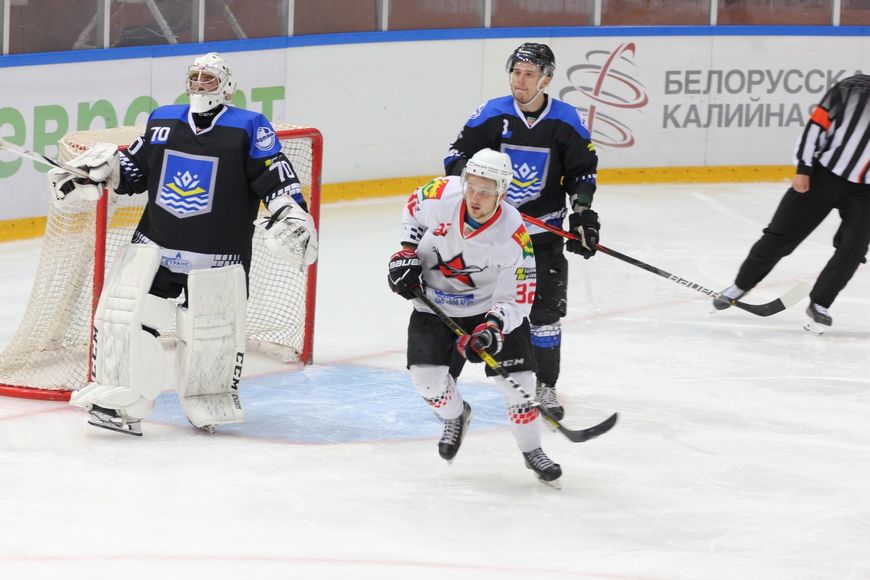 Поединок начался с преимуществом команды Олега Хмыля, которая уже на третьей минуте открыла счет силами Константина Пименова. Во втором периоде новополоцкие хоккеисты продолжили атаковать и еще четырежды огорчили вратаря соперников. Отличились Игорь Леоненко, Владислав Лоновенко, Виктор Гавриленко и Павел Шагибалов.