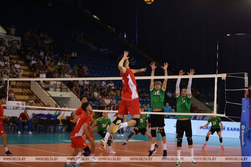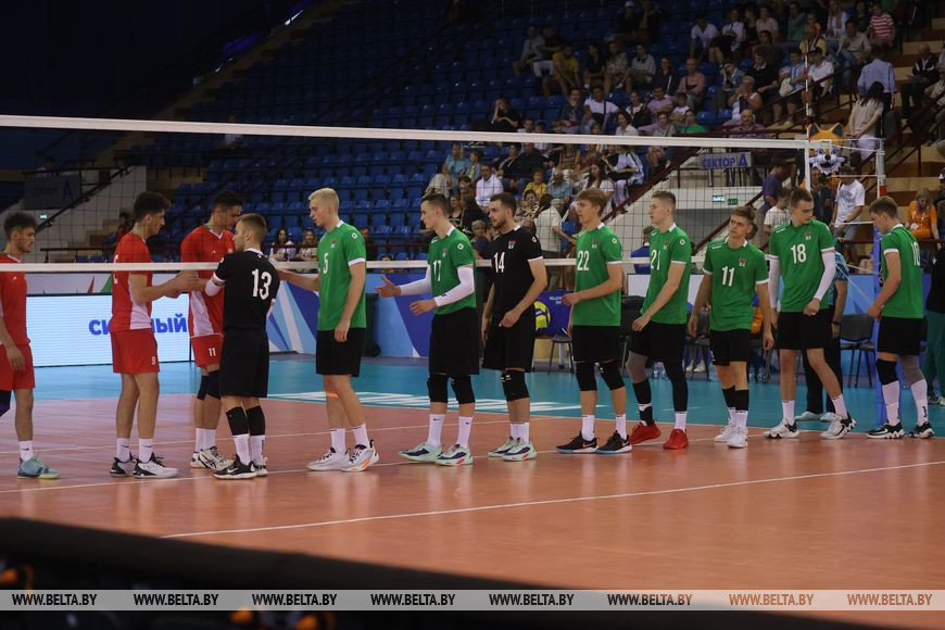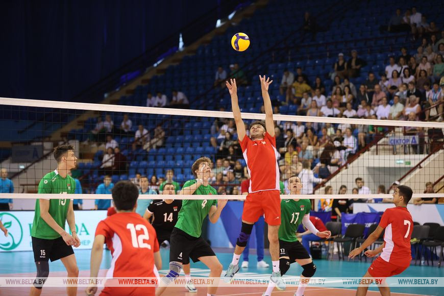 Участие в соревнованиях принимают юниорские сборные из шести стран, турнир проходит по круговой системе. В поединке четвертого тура белорусские волейболисты принимали сверстников из Таджикистана, встреча закончилась очередной убедительной викторией наших парней - 3:0 (25:8, 25:10, 25:10). В предыдущих матчах турнира хозяева площадки с таким же счетом разобрались с командами Армении, Узбекистана и ОАЭ.