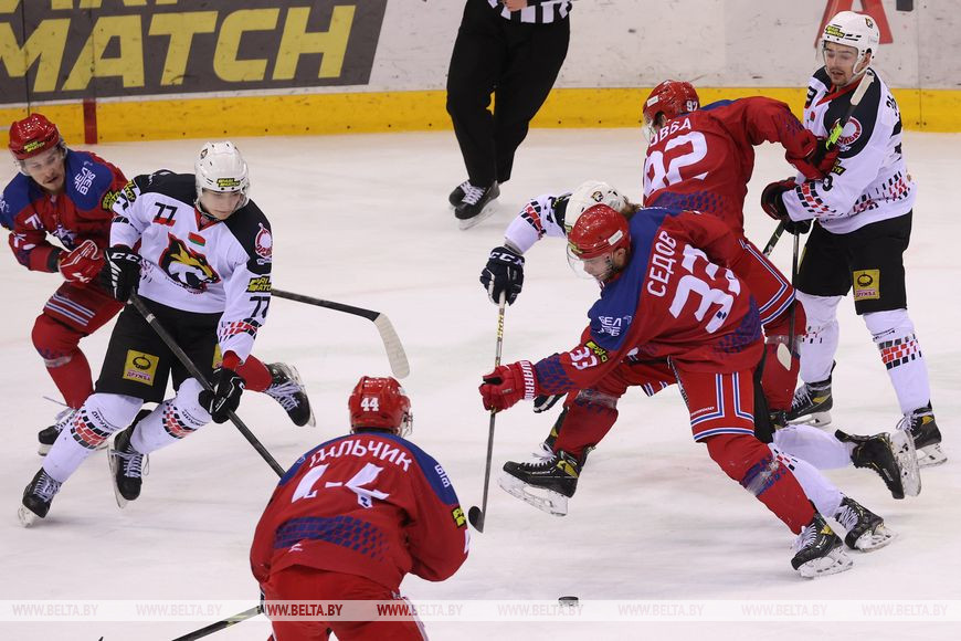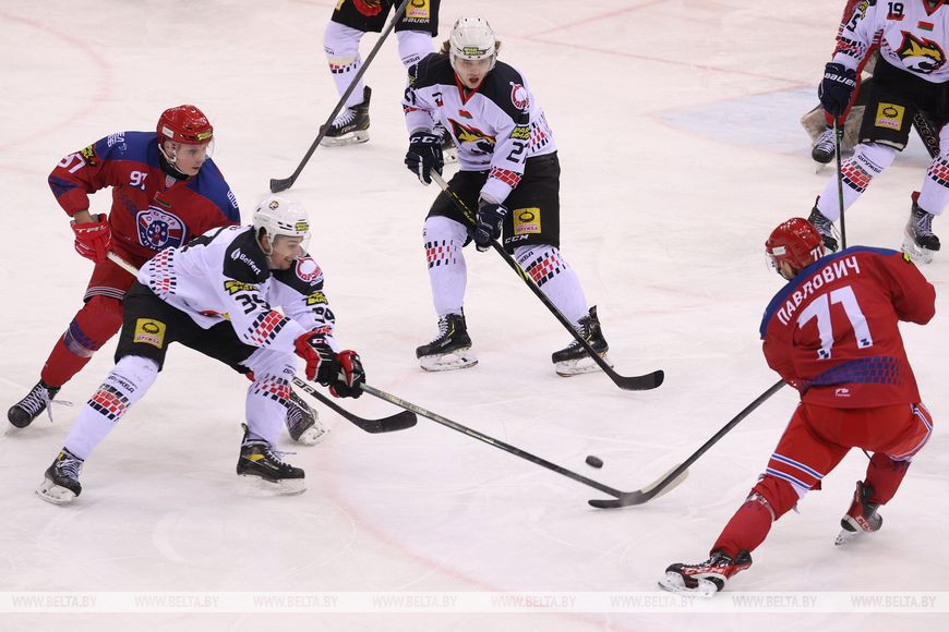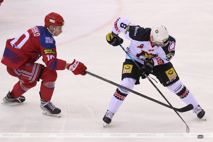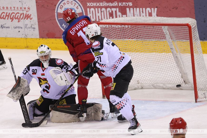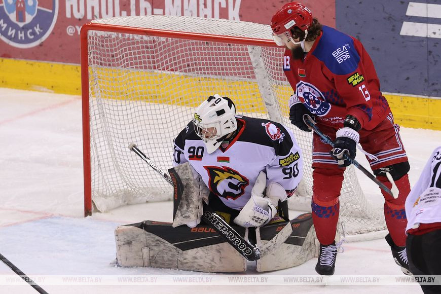 Команды верхней шестерки экстралиги вышли на лед впервые после международной паузы. Основное время матча в столице закончилось со счетом 1:1, обе шайбы были заброшены в первом периоде: на гол капитана "Юности" Андрея Антонова ответил форвард "рысей" Евгений Дадонов. Овертайм победителя не выявил, а в серии послематчевых бросков точнее были минчане - победный буллит исполнил Аслан Раисов.