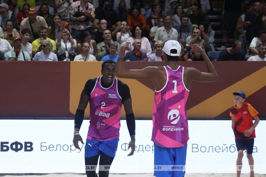 Участие в турнире приняли по 12 мужских и женских пар. Главный приз у парней забрали кубинцы Нослен Диас и Луис Алайо, которые в решающем матче были сильнее москвичей Никиты Лямина и Алексея Гусева (21:18, 21:12). Тройку призеров дополнили Олег Стояновский и Илья Лешуков из новоуренгойского "Факела". Наши Александр Дедков и Павел Петрушко завершили выступления в четвертьфинале, также в Минске выступили волейболисты Казахстана.