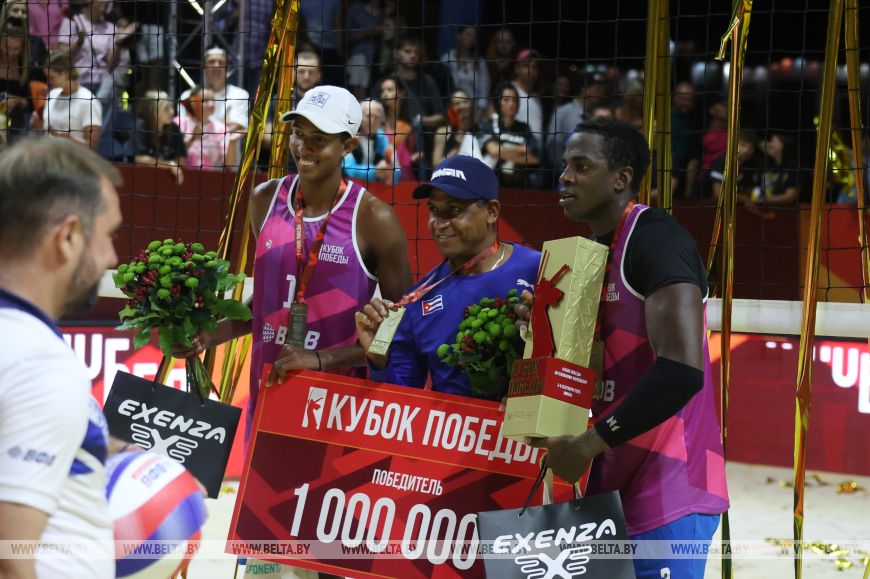 Участие в турнире приняли по 12 мужских и женских пар. Главный приз у парней забрали кубинцы Нослен Диас и Луис Алайо, которые в решающем матче были сильнее москвичей Никиты Лямина и Алексея Гусева (21:18, 21:12). Тройку призеров дополнили Олег Стояновский и Илья Лешуков из новоуренгойского "Факела". Наши Александр Дедков и Павел Петрушко завершили выступления в четвертьфинале, также в Минске выступили волейболисты Казахстана.