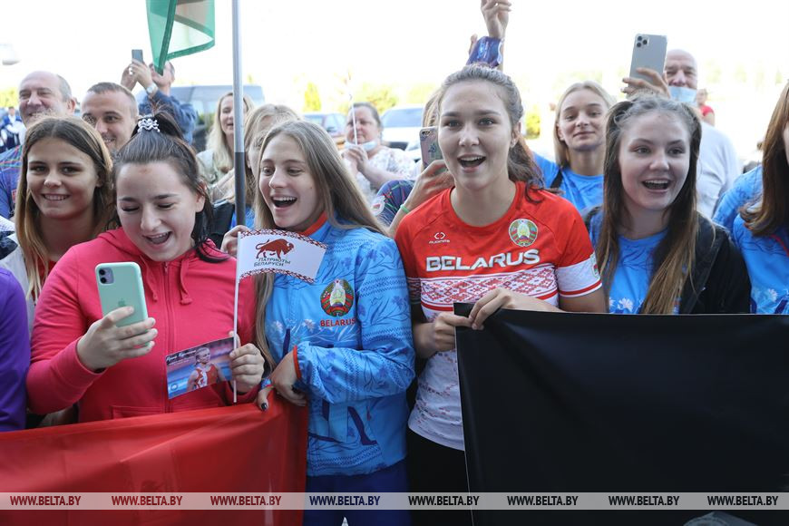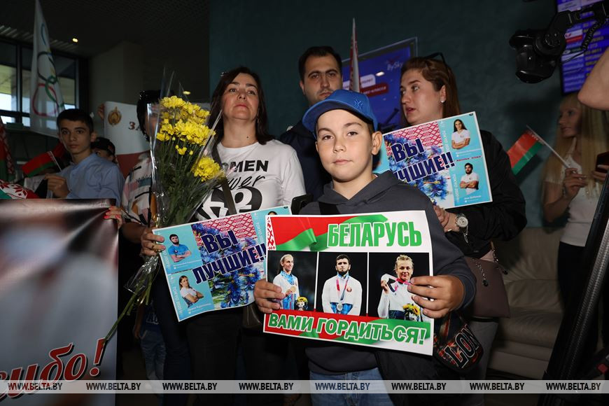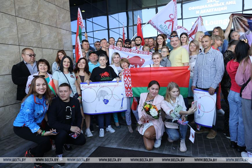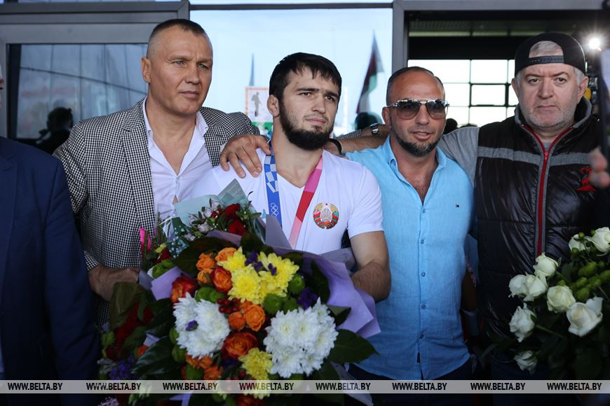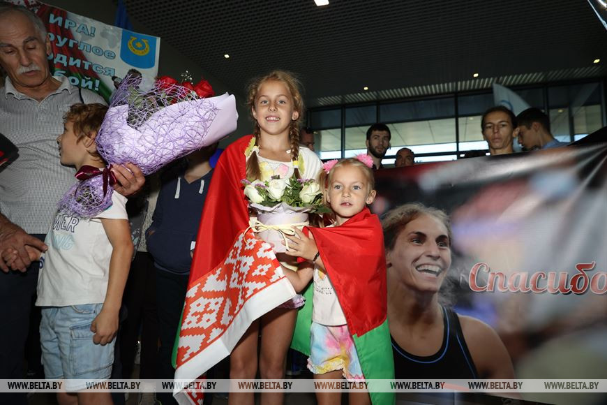 8 августа, Минск /Корр. БЕЛТА/. Белорусские борцы, призеры Олимпиады в Токио – Ирина Курочкина, Магомедхабиб Кадимагомедов и Ванесса Колодинская – прилетели в Беларусь. Как встречают белорусских спортсменов прямо с самолета в Национальном аэропорту – прямая трансляция. -0-