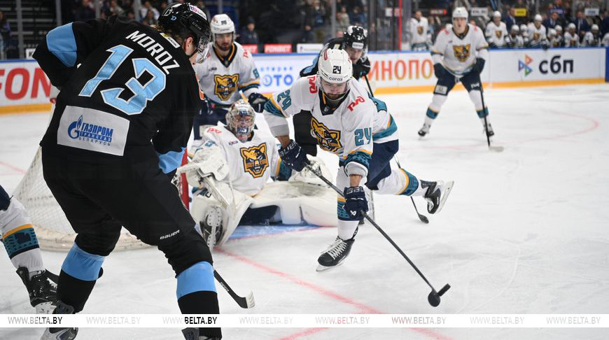 Поединок "зубров" и "леопардов" на "Минск-Арене" завершился победой хозяев со счетом 5:2. Голами в составе "Динамо" отметились Сэм Энас, Никита Пышкайло, Джош Брук, Алекс Лимож и Илья Усов.