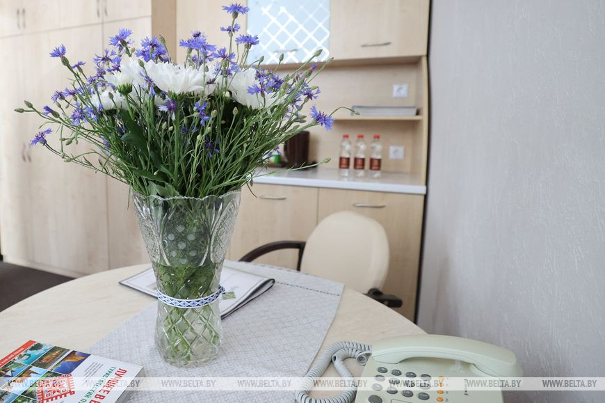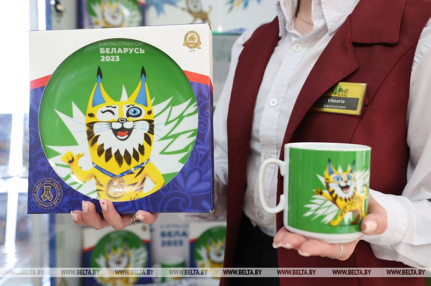 У входа в гостиницу разместилась витрина с сувенирами, где можно приобрести различную продукцию с символикой Беларуси. В улучшенных номерах отеля для спортсменов представлен национальный белорусский колорит в виде рушников, букетов с васильками, а также книг о Беларуси.