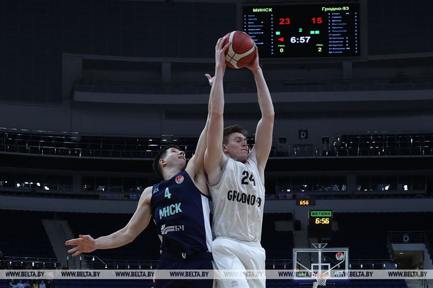 Сегодня на паркете "Минск-Арены" подопечные Ростислава Вергуна встретили упорное сопротивление со стороны команды Дмитрия Кузьмина, но в итоге все же добились победы с перевесом в четыре очка - 71:67. Послезавтра соперники также сыграют на площадке действующих чемпионов страны, а 19 мая соперники встретятся в Гродно. Оба финалиста выиграли полуфинальные серии с одинаковым результатом - 3:1. Минчане переиграли витебский "Рубон", а гродненцы были сильнее могилевского "Борисфена". Неудачники полуфинальных баталий завтра в Могилеве проведут первый матч за бронзовые награды.