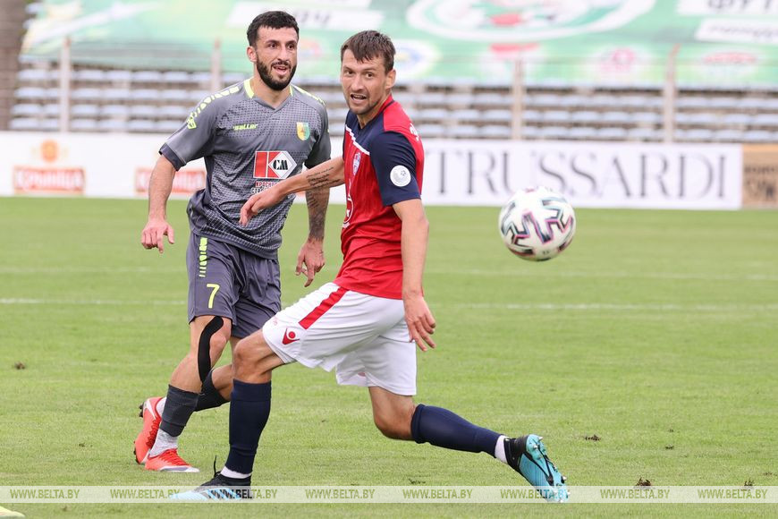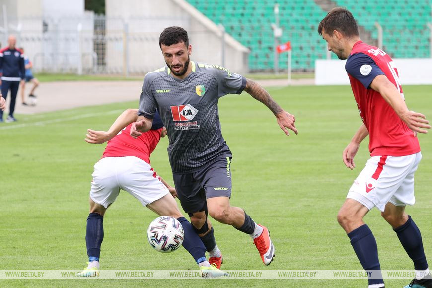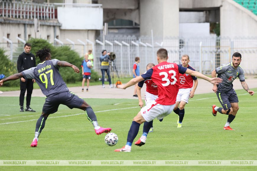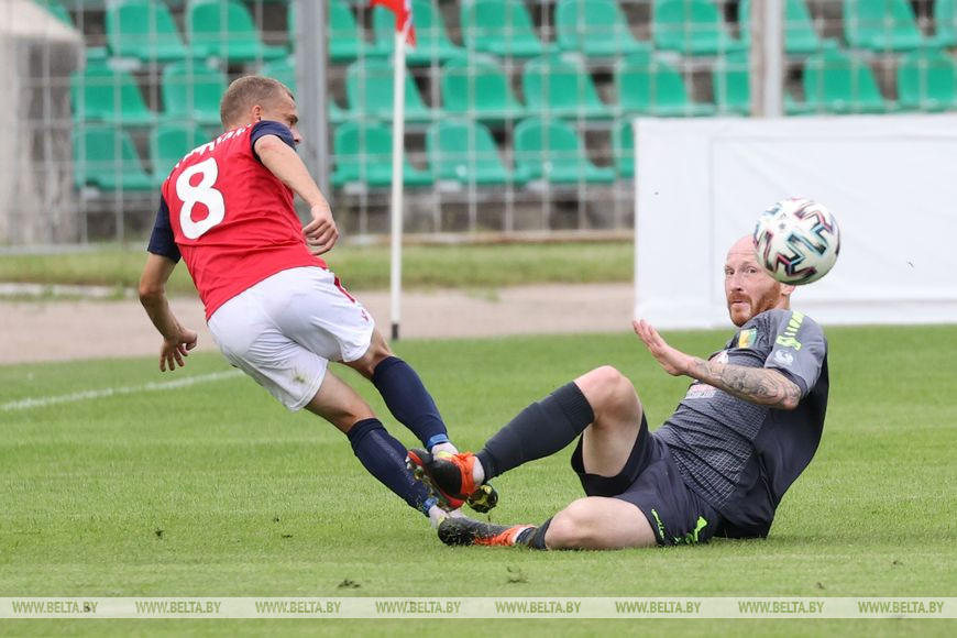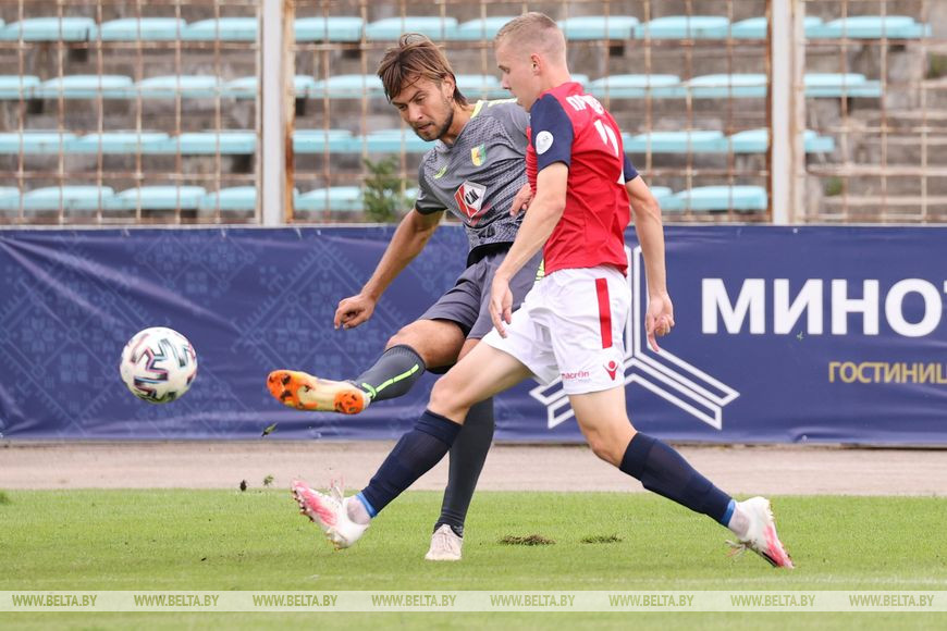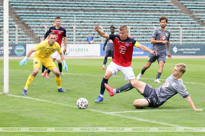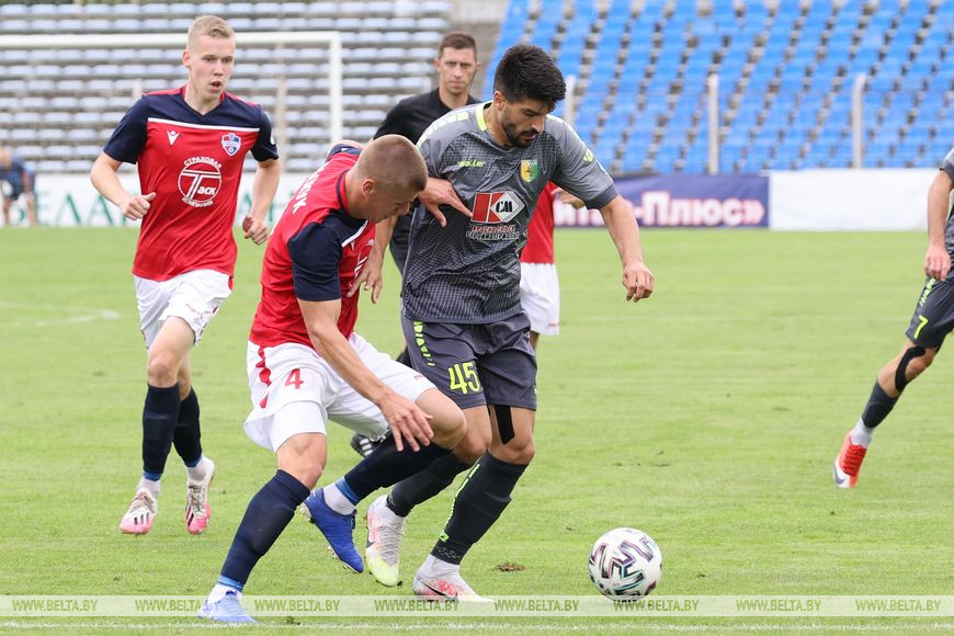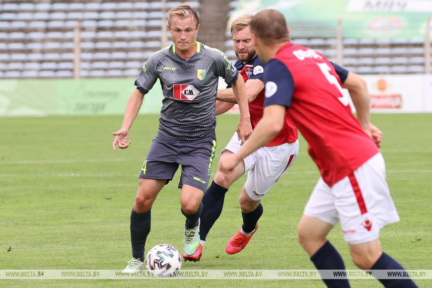 Игра на поле столичного стадиона "Трактор" началась с атак гостей, и на 24-й минуте Валерий Жуковский вывел "Неман" вперед. Однако это не смутило минчан, и они еще до перерыва трижды поразили ворота Сергея Курганского - через пять минут Александр Васильев реализовал пенальти, а потом голевой дубль оформил Антон Шрамченко.
