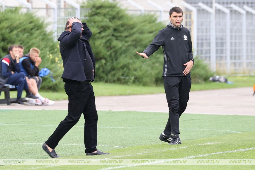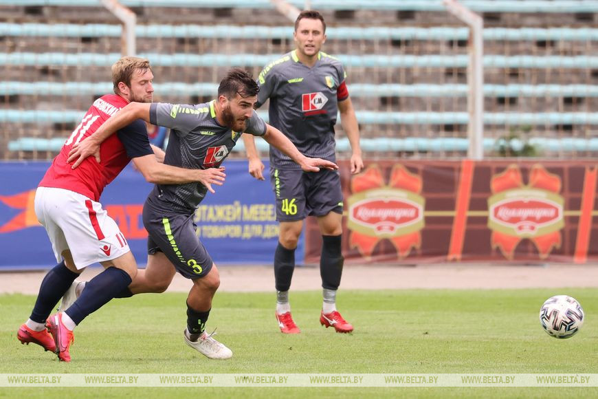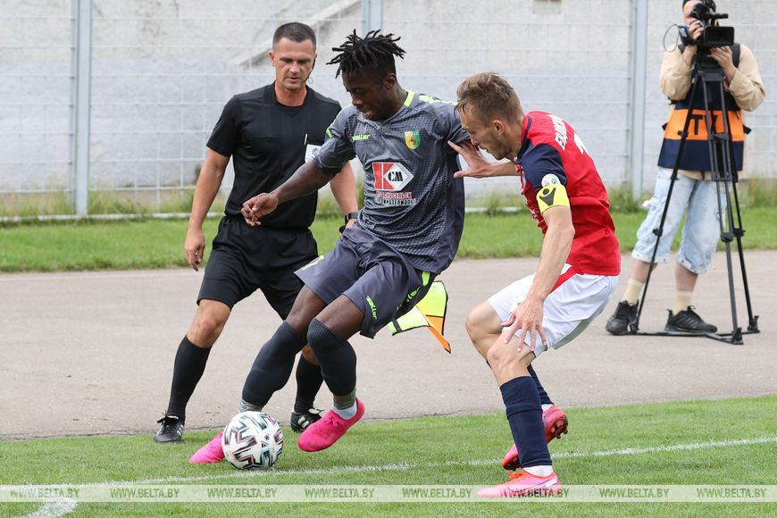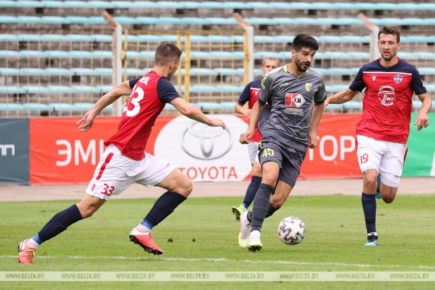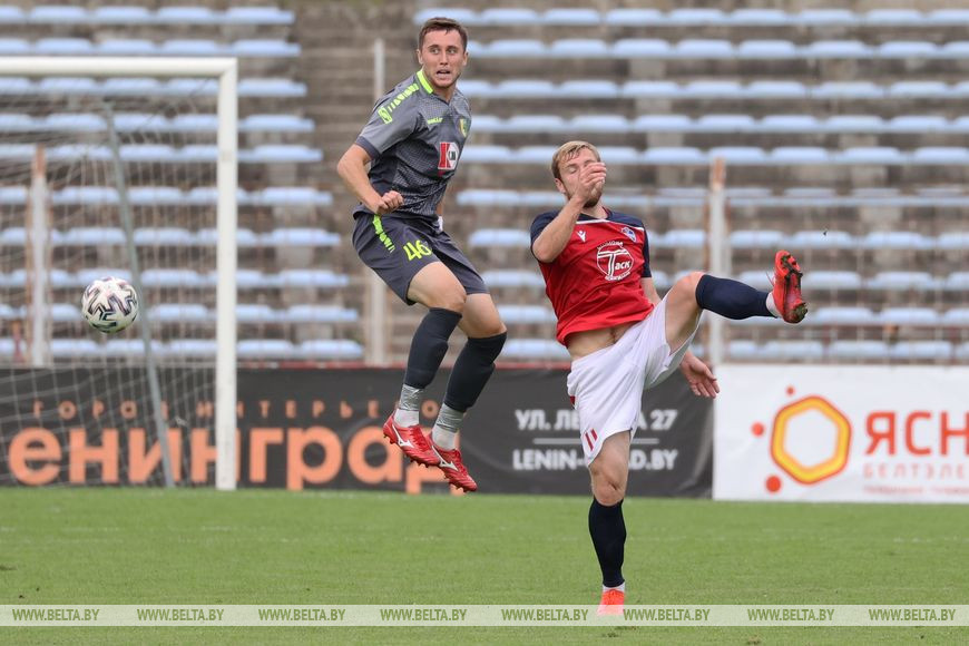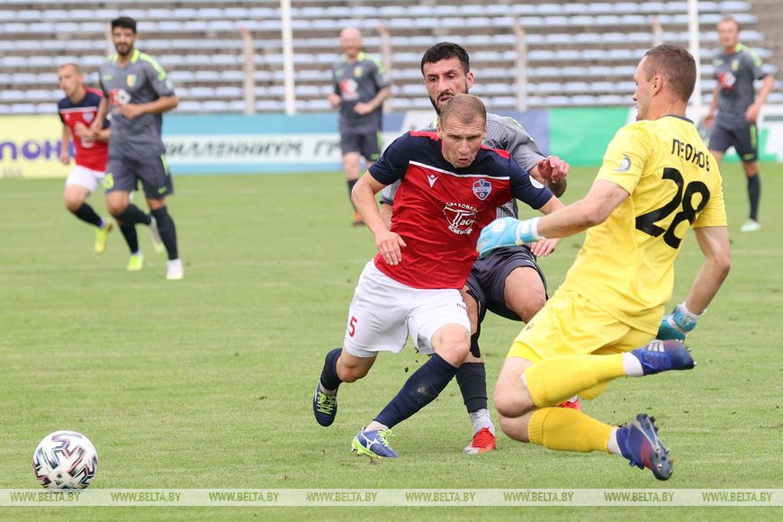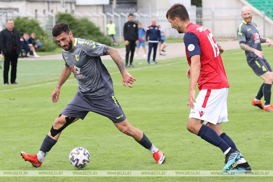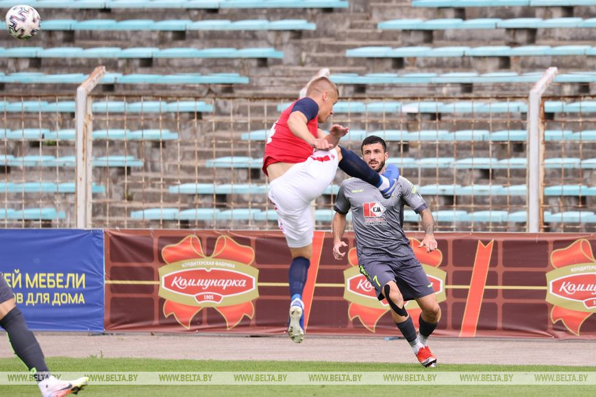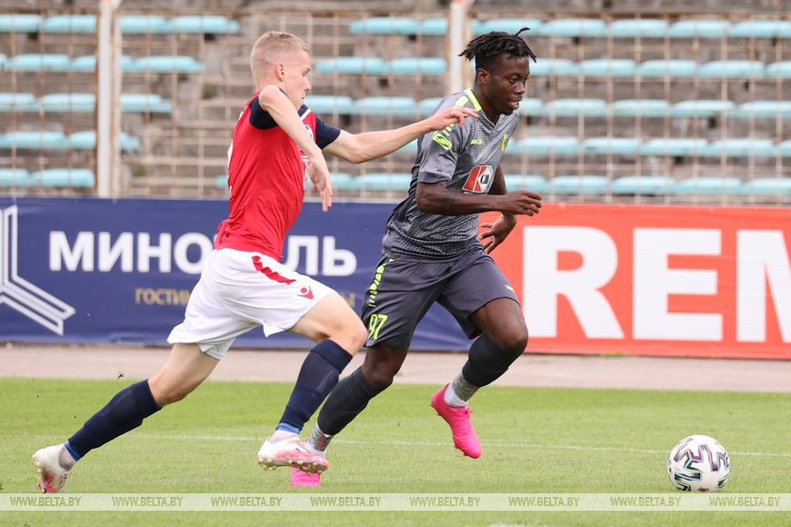 Игра на поле столичного стадиона "Трактор" началась с атак гостей, и на 24-й минуте Валерий Жуковский вывел "Неман" вперед. Однако это не смутило минчан, и они еще до перерыва трижды поразили ворота Сергея Курганского - через пять минут Александр Васильев реализовал пенальти, а потом голевой дубль оформил Антон Шрамченко.