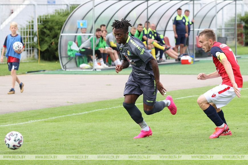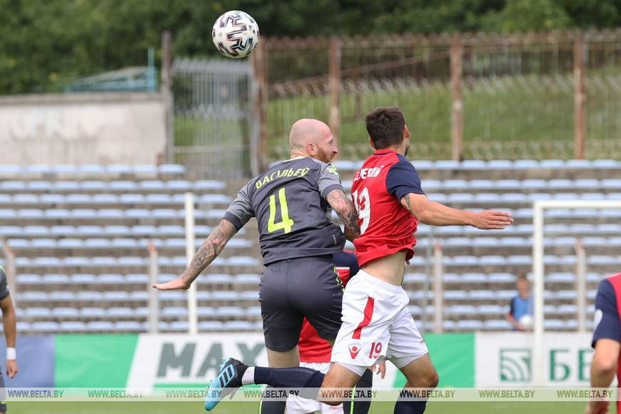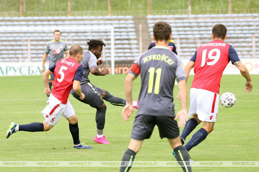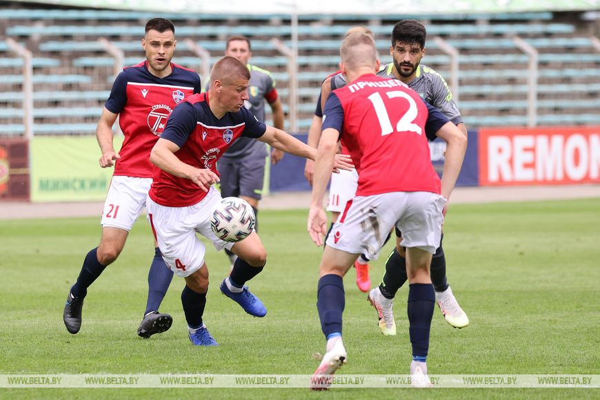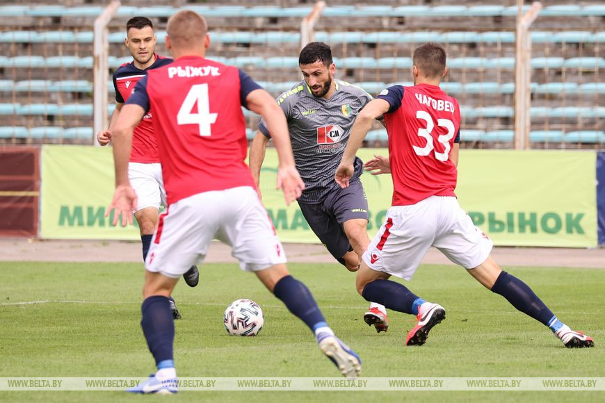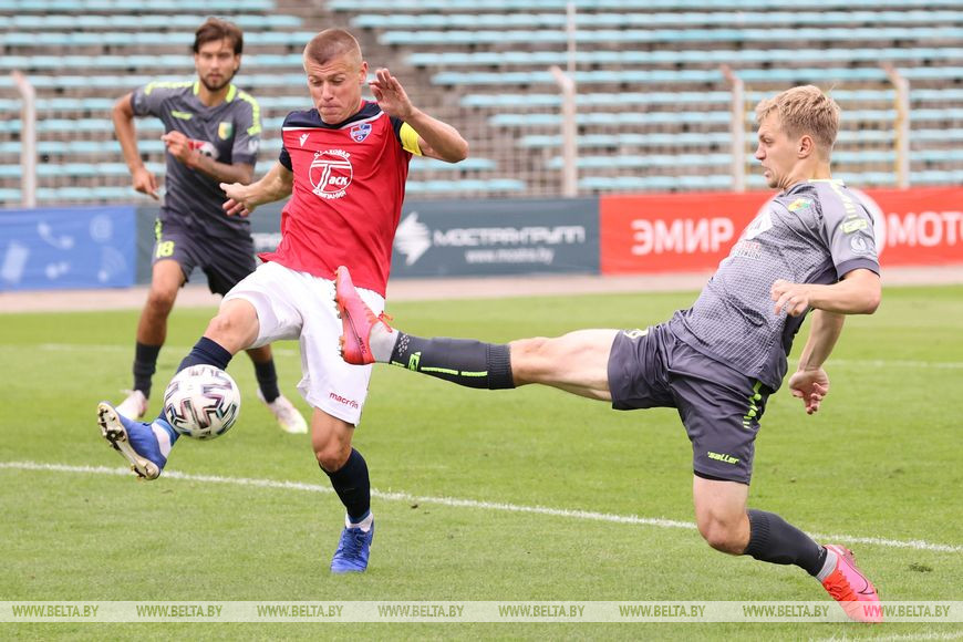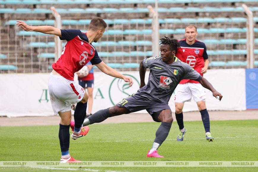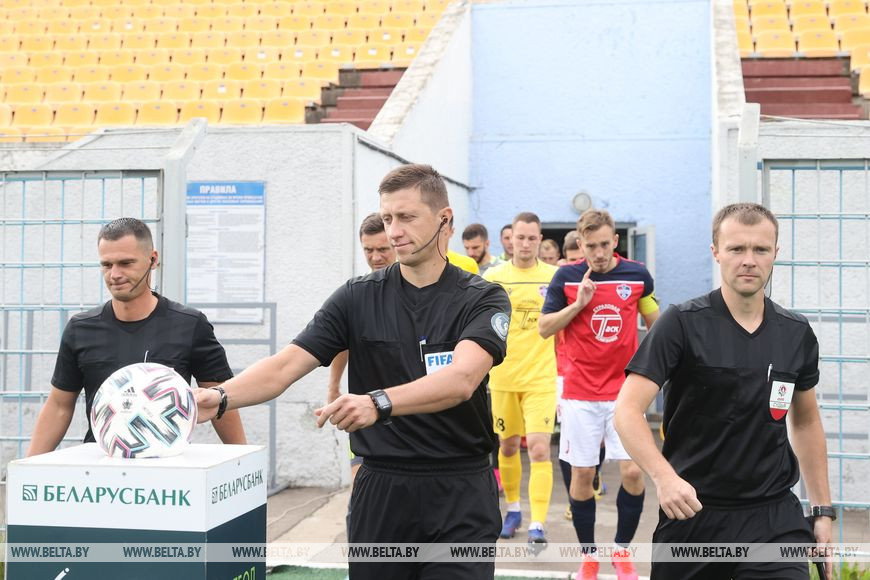 Игра на поле столичного стадиона "Трактор" началась с атак гостей, и на 24-й минуте Валерий Жуковский вывел "Неман" вперед. Однако это не смутило минчан, и они еще до перерыва трижды поразили ворота Сергея Курганского - через пять минут Александр Васильев реализовал пенальти, а потом голевой дубль оформил Антон Шрамченко.