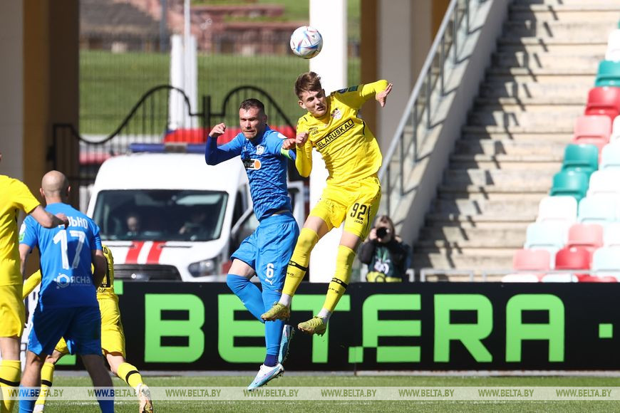 Результаты остальных встреч: "Торпедо-БелАЗ" (Жодино) - "Слуцк" - 1:1, "Ислочь" (Минский район) - "Славия" (Мозырь) - 0:1, "Динамо" (Брест) - "Неман" (Гродно) - 1:3, "Белшина" (Бобруйск) - БАТЭ (Борисов) - 0:3, "Минск" - "Гомель" - 2:2. Столичный "Энергетик-БГУ" пропускает 7-й тур.