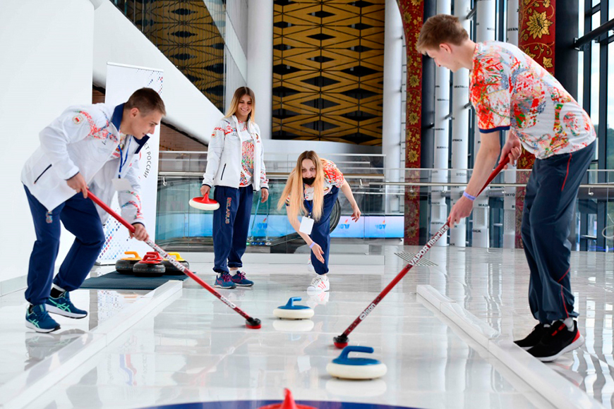 Далее юные олимпийцы в составе нескольких команд отправились в путешествие по образовательным, спортивным и интерактивным площадкам. Там ребята смогли проверить функциональную готовность, узнать о новых видах тренировок, освоить азы управления дронами, попробовать силы в керлинге, квадропонге и сокерболе.