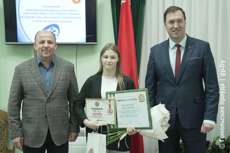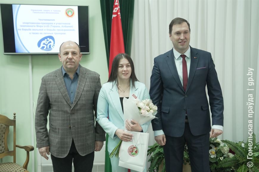 28 ноября, Гомель /Корр. БЕЛТА/. В Гомеле чествовали спортсменов-призеров чемпионата мира U23 по вольной и греко-римской борьбе - воспитанников областного центра олимпийского резерва единоборств, а также их тренеров, передает корреспондент БЕЛТА.